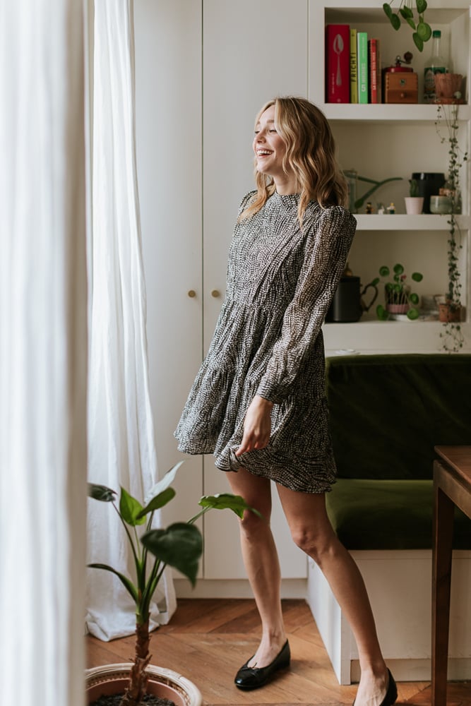 La mannequin mesure 1m74 et porte une taille 36. Ce modèle taille normalement, nous vous conseillons de prendre votre taille habituelle.